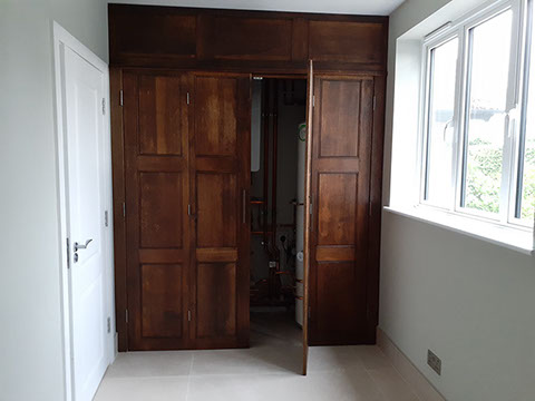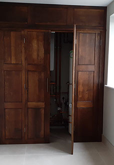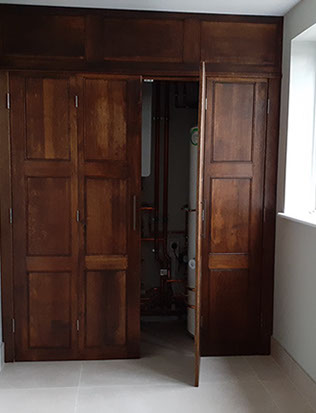 Oak bifold door screen to new home heating system - Walton on the hill, Surrey